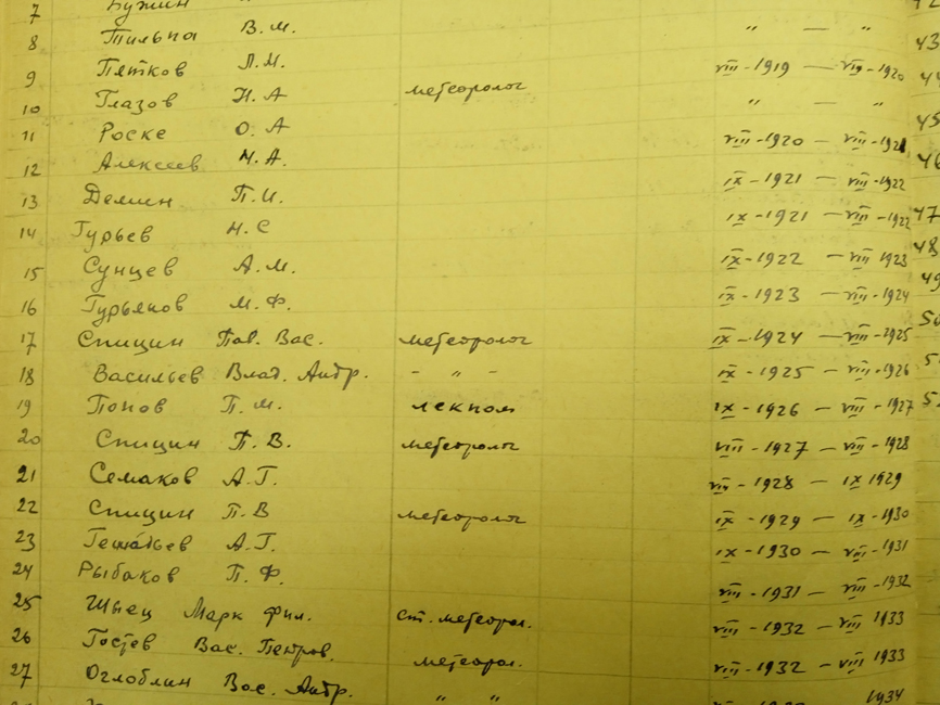 Список научных сотрудников на пс Югорский Шар.