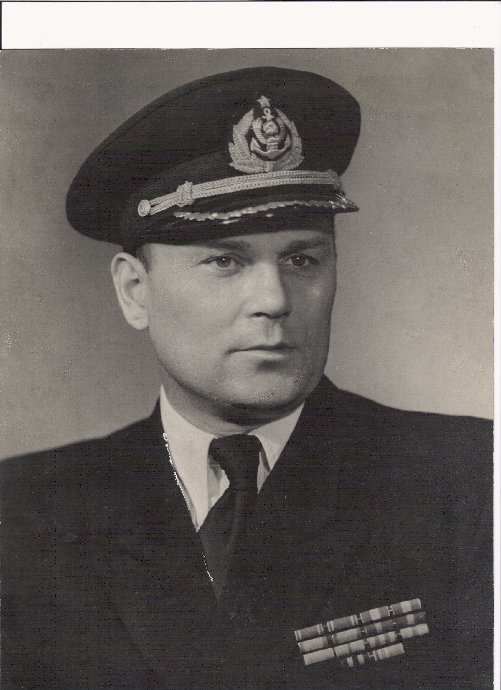 В.И. Аккуратов в форме капитана 1-го ранга, ~1951 г. Фото Евгения Умнова (ТАСС?)