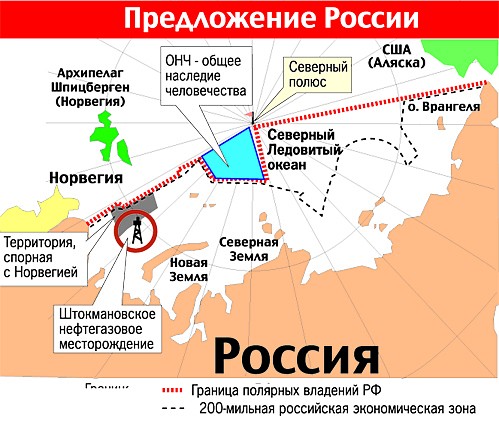 - Обоснование текущего положения дел достаточно понятно, кто зачем и почему. Еще раз отсылаю к статье судьи Международного Трибунала ООН по морскому праву А.Л. Колодкина "Континентальный шельф России в Арктике: перспективы расширения". Юридического обоснования позиции жесткого отстаивания секторального деления Северного ледовитого океана - не видно вообще. Ни четкого указания статей, на основании которых можно это сделать. Ни цитат из законов, ни приведения примеров успешного решения подобных вопросов. Ни возможных путей решения, ни предлагаемых конкретных действий. Без этого - дальнейшее обсуждение просто невозможно.