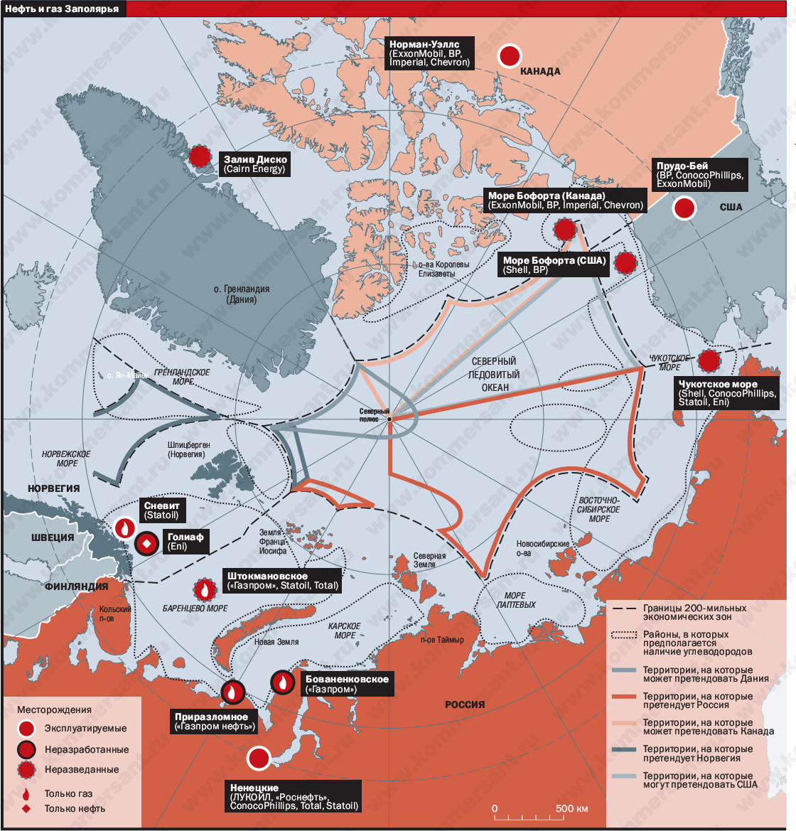 Напомним, на расширенный континентальный шельф (за пределами 200 морских миль от исходных линий, используемых для определения ширины территориального моря) в Арктике претендуют пять государств - Россия, Дания, Норвегия, Канада и США. Все приарктические страны при оформлении прав на шельф в данном районе действуют или намерены действовать в соответствии с процедурами, установленными данной Конвенцией, т.е. путем подачи заявок в Комиссию по границам континентального шельфа (КГКШ).