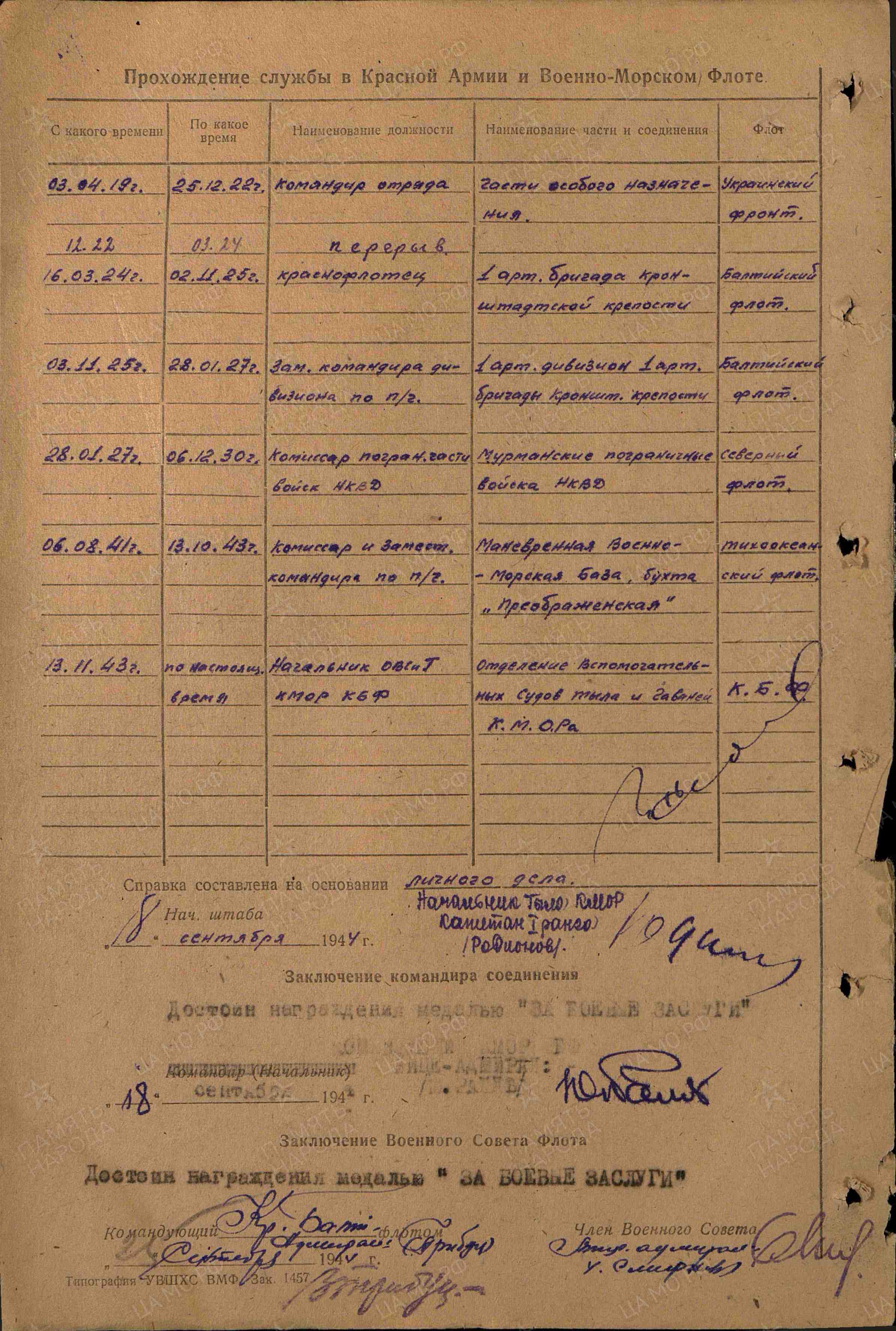 Из наградных док-в видно, что был перерыв в службе с 1930 по 1941 г. Много чего за этот период могло случиться.
