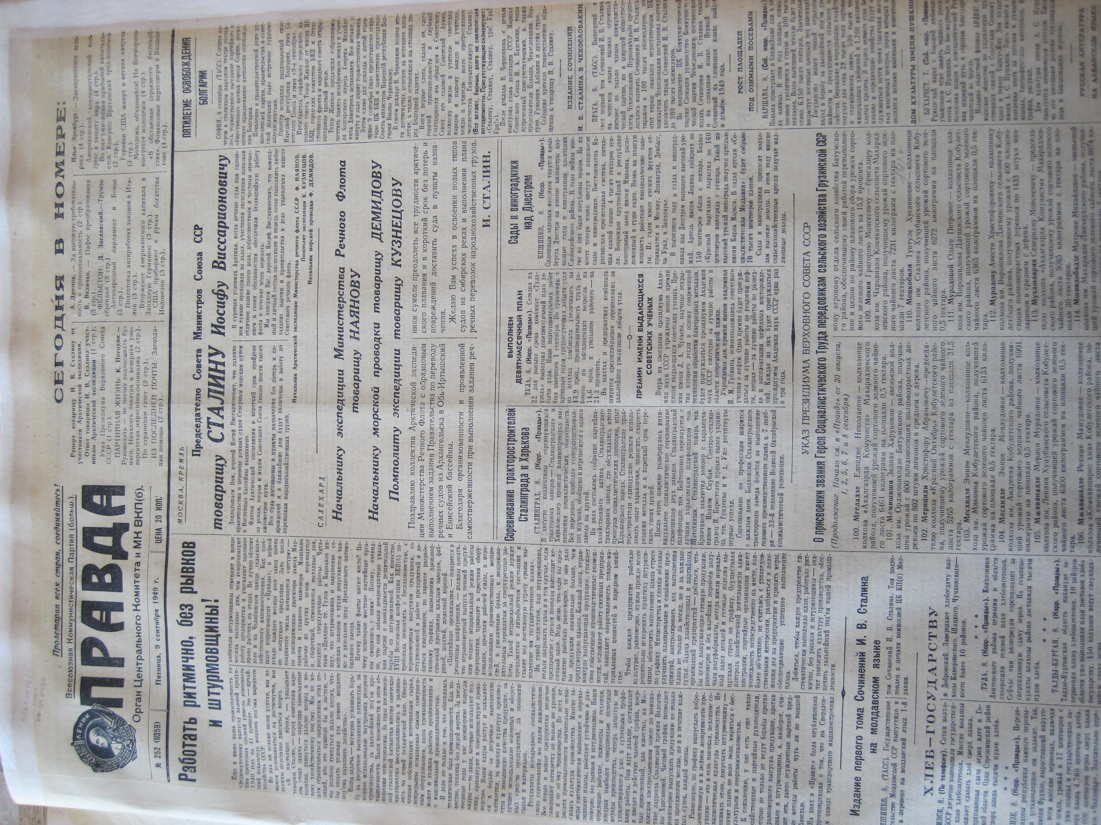 А вот сегодня я раздобыл. Газета "Правда" от 9 сентября 1949 г.