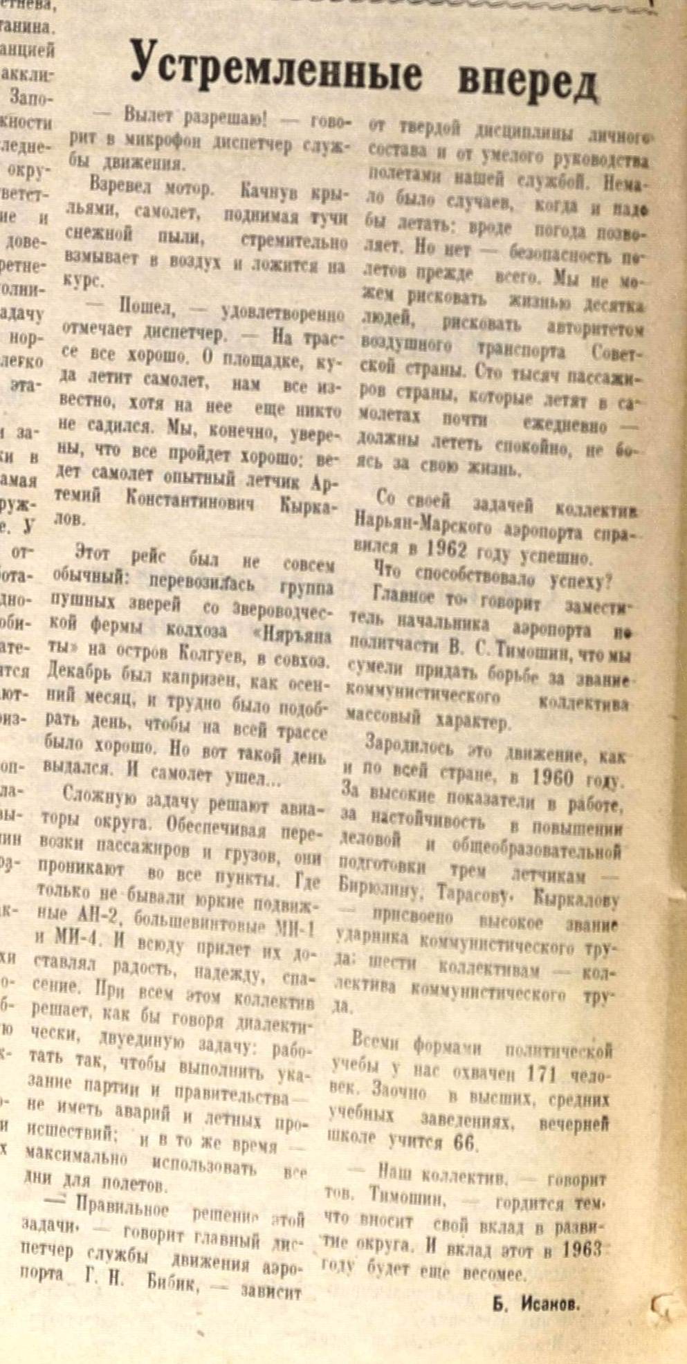Заметка из газеты "Нарьяна-Вындер" № 2 (9120), от 02.01.1963 года.