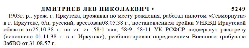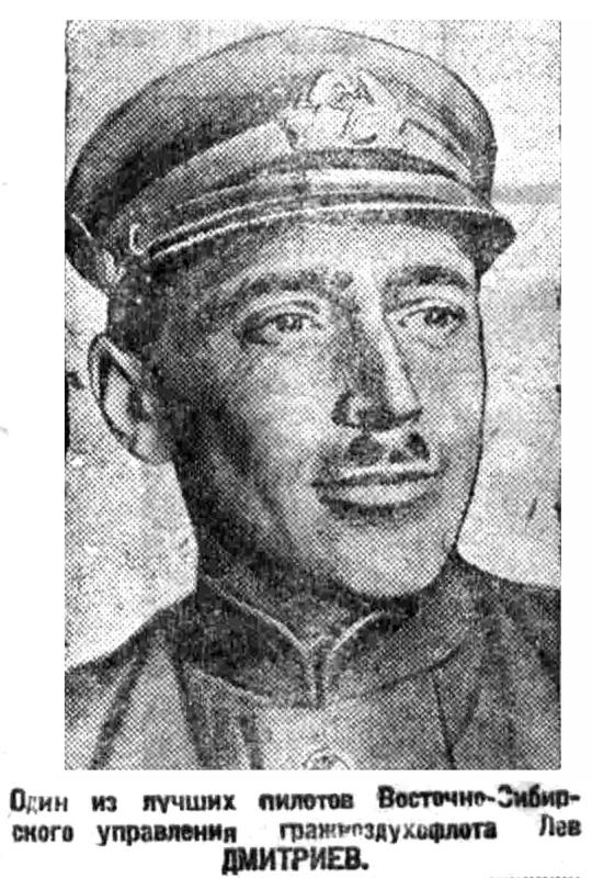 — Лев Николаевич Дмитриев? Это наш лучший пилот. Это водитель мощного «АНТ-7». Это он летал зимой в трескучие морозы до Якутска и обратно за два — за три дня. А вы знаете, что значит пролететь 5400 километров за два дня, когда на полет необходимо шесть дней? Лев Николаевич — настоящий пилот.