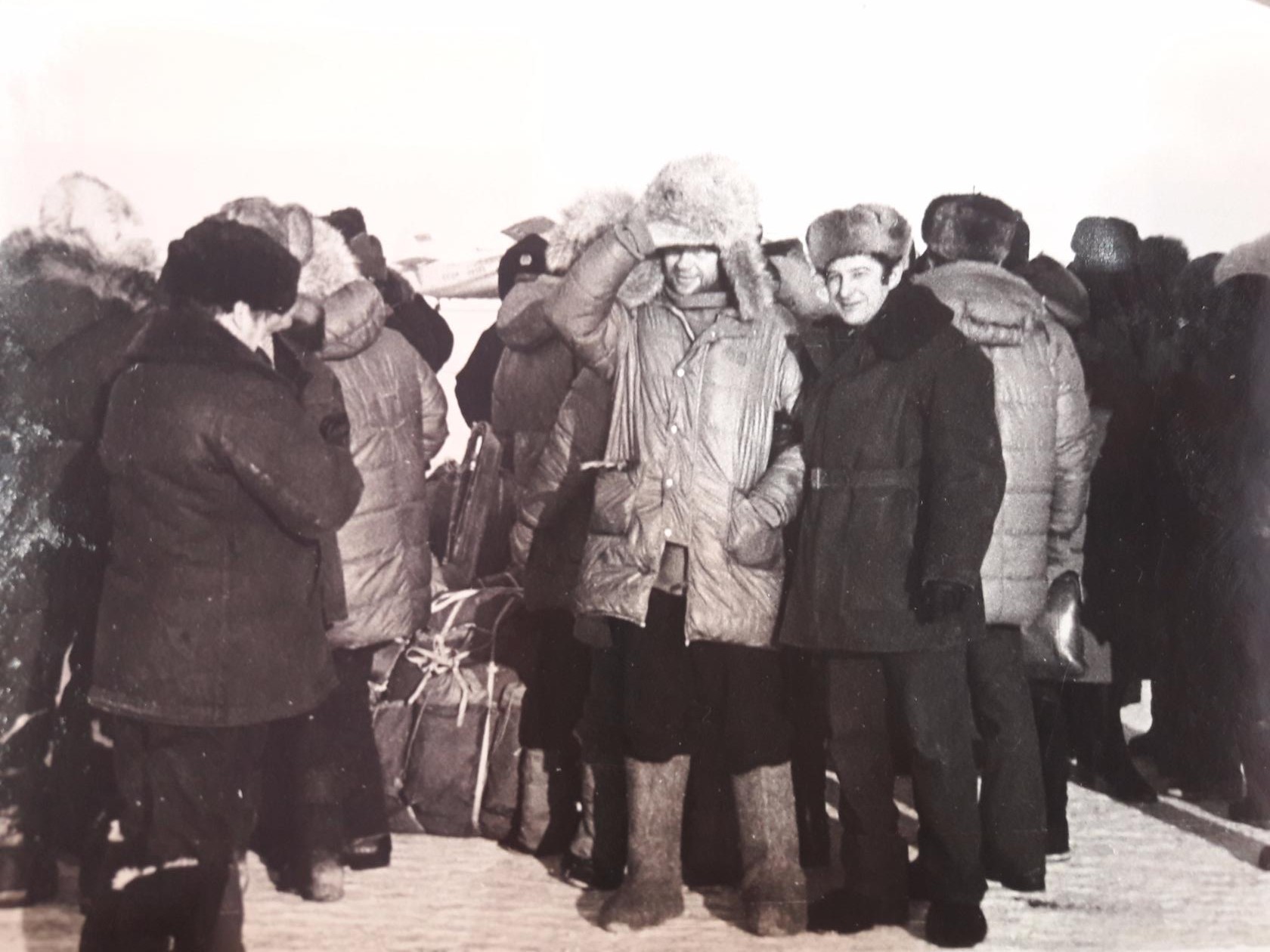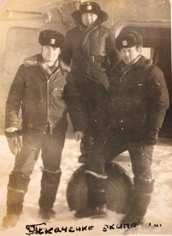 Экипаж МИ-4 слева направо 2.п.Валерий Новгородцев, б.м Георгий Балашов , квс. Александр Ткаченко , пос. Белая Гора. Якутия. зима 1977г.