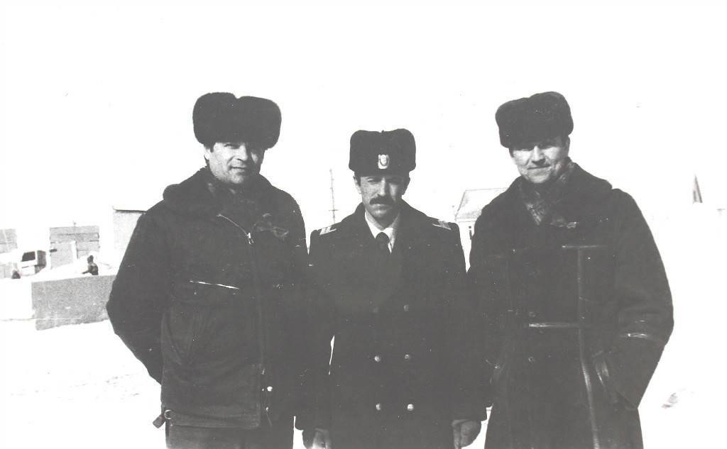 Район Чокурдаха, на берегу р. Индигирка, Русское Устье ,Станчик. Экипаж Ми-4. Слева ЗКАЭ Юрий О. Добротворцев, Адольф Милованов, замполит НК ОАО И.И. Тютюнькин, Резников Т.А., б.м Шерстюков В.Н. Из архива Адольфа Милованова, "Одноклассники"