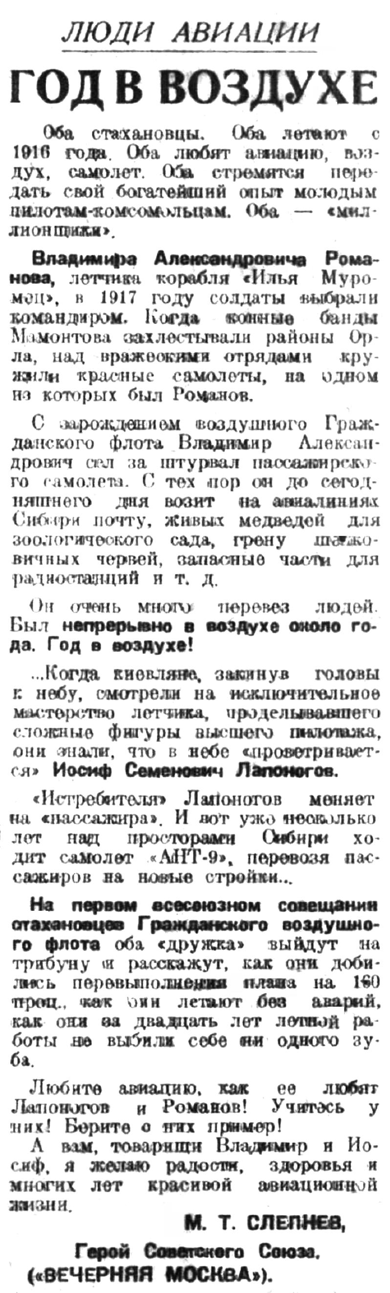 Советский летчик — не только изумительный мастер своего дела, но и его поэт.