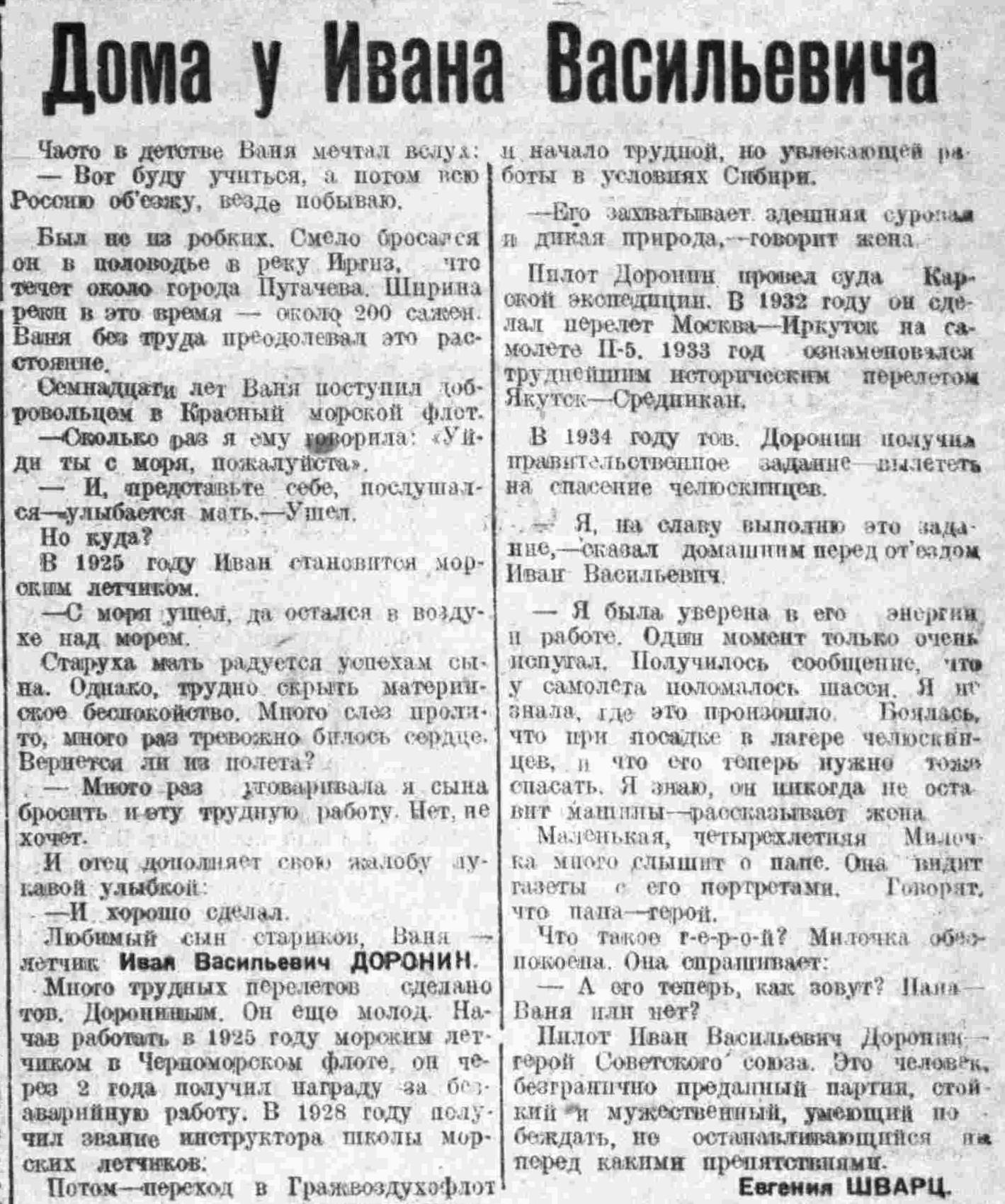 Как он работал на Севере? В телеграммах Василий не многословен, да в них, пожалуй, и не было надобности. Газеты рассказали больше, чем самые многословные телеграммы. Разве можно не гордиться тем, что за работой, за судьбой наших полярников слежу не только я, но и все те, кому дорога советская авиация. Это значит: за ними следит с вниманием и любовью вся Страна Советов.