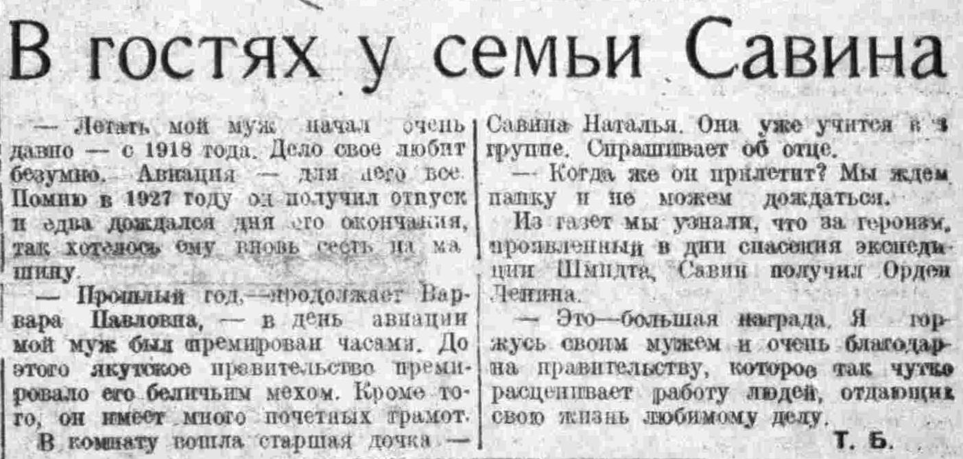 27 февраля гидропорт получил приказ: перебросить наши самолеты во Владивосток для опасения челюскинцев. Мы, работники гидропорта, знали, что для спасения героев Арктики важен каждый час, поэтому на сбор и подготовку самолетов были брошены все силы. Заботливо была выбрала лучшая материальная часть и необходимые запасные части.
