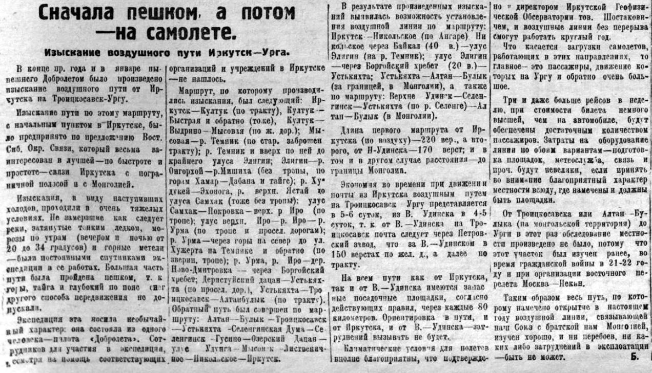 Советская Сибирь, 1926, № 084 (1926-04-14) Изыскания возд.пути Иркутск-Урга.jpg