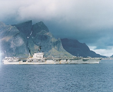 Авианосец «Америка» в норвежских водах на учениях «Ocean Safari». Октябрь 1985 года. Фото с сайта www.dodmedia.osd.mil : 26-16-2.jpg