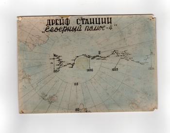 Ломаной, зигзагообразной линией обозначен на карте двухлетний путь «СП-4». Общая протяженность двухгодичного дрейфа «СП-4» от 75-го до 87-го градуса северной широты составляет около пяти тысяч километров. Сейчас «СП-4» находится в районе, где два года назад начинала свой дрейф научная станция «Северный полюс-3».