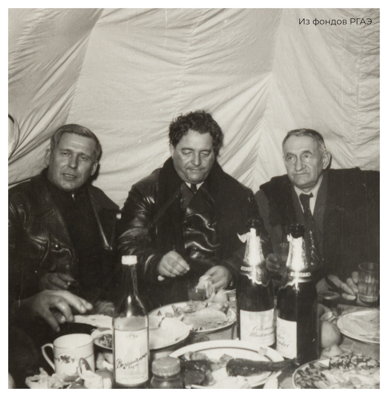 1 мая на "СП-4". Слева-направо: В.В.Фролов, В.Ф.Бурханов, Д.И.Щербаков.//Из коллекции РГАЭ