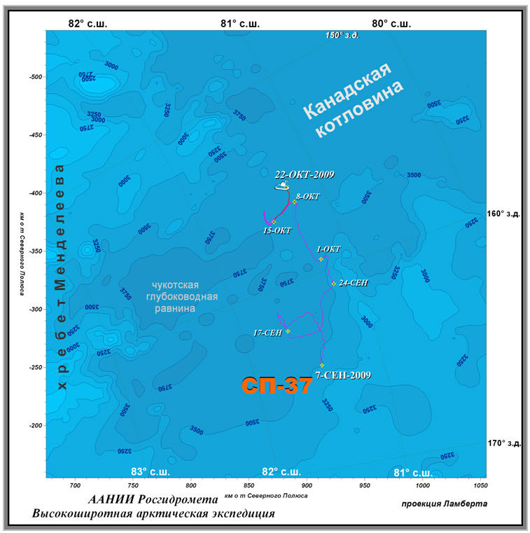 Информация о дрейфующей станции «Северный полюс-37» за период 18.09.09-24.09.09