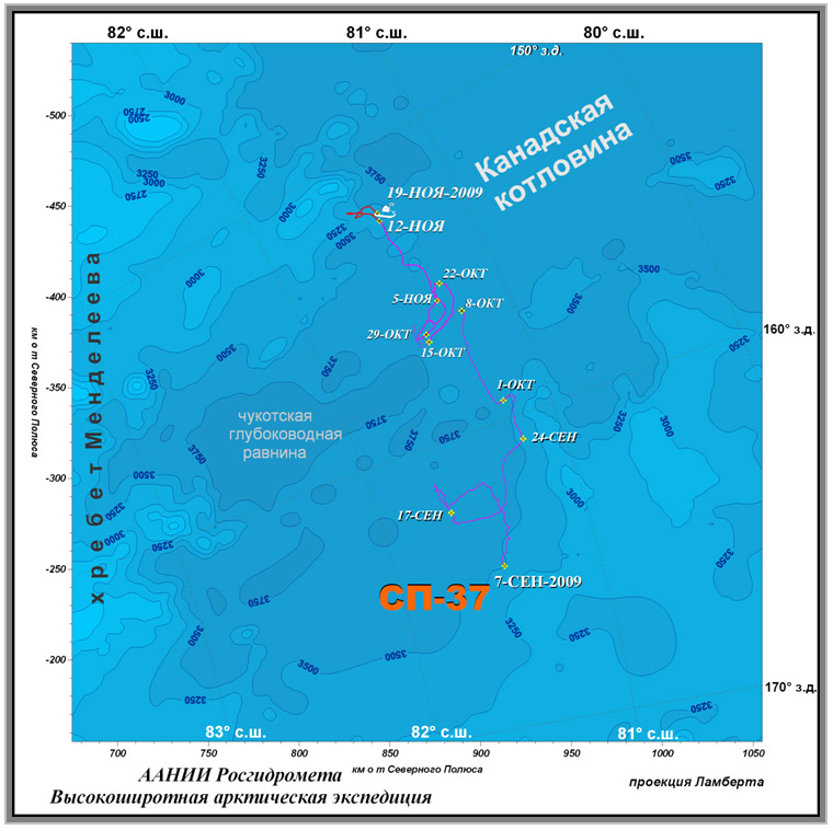Информация о дрейфующей станции «Северный полюс – 37» за период 06 – 12 ноября 2009