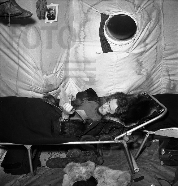 Научно-исследовательская дрейфующая полярная станция "Северный Полюс-3". После трудового дня. Завтра снова на вахту (аэролог Игорь Цигельницкий). Апрель 1954 Фотограф Рюмкин Яков (1913-1986) - Москва http://www.fotosoyuz.ru/ru/catalog/pict ... t=&search=