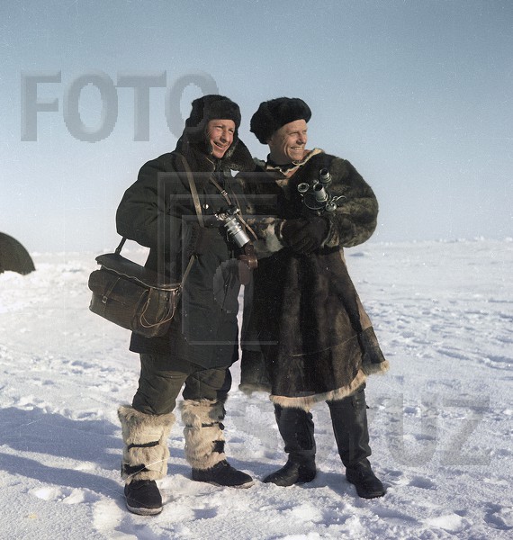 Научно-исследовательская дрейфующая полярная станция "Северный полюс-3" (СП-3). Фотограф Яков Рюмкин и фотокорреспондент-кинооператор экспедиции Евгений Яцун, создавший фильм о дрейфующей станции. Апрель 1954 Фотограф РЮМКИН Яков (1913-1986) - Москва http://www.fotosoyuz.ru/ru/catalog/pict ... t=&search=