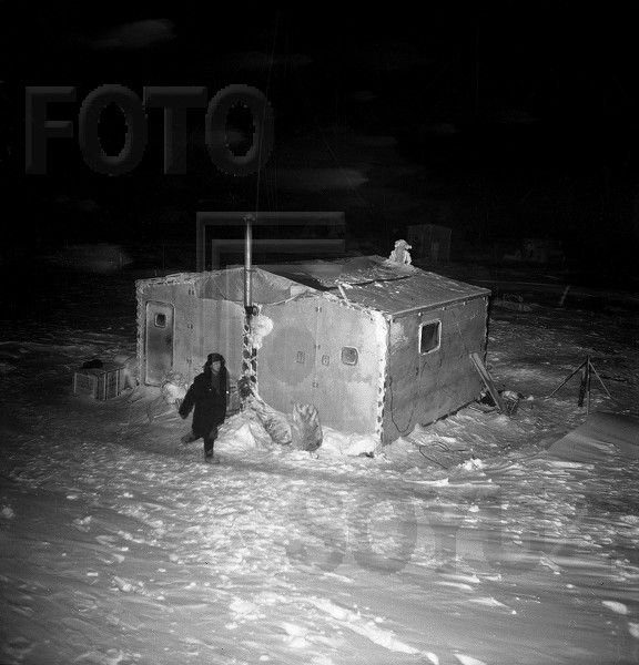 Научно-исследовательская дрейфующая полярная станция "Северный Полюс-3". Какая бы ни была погода, на дежурстве надо быть вовремя. Апрель 1954