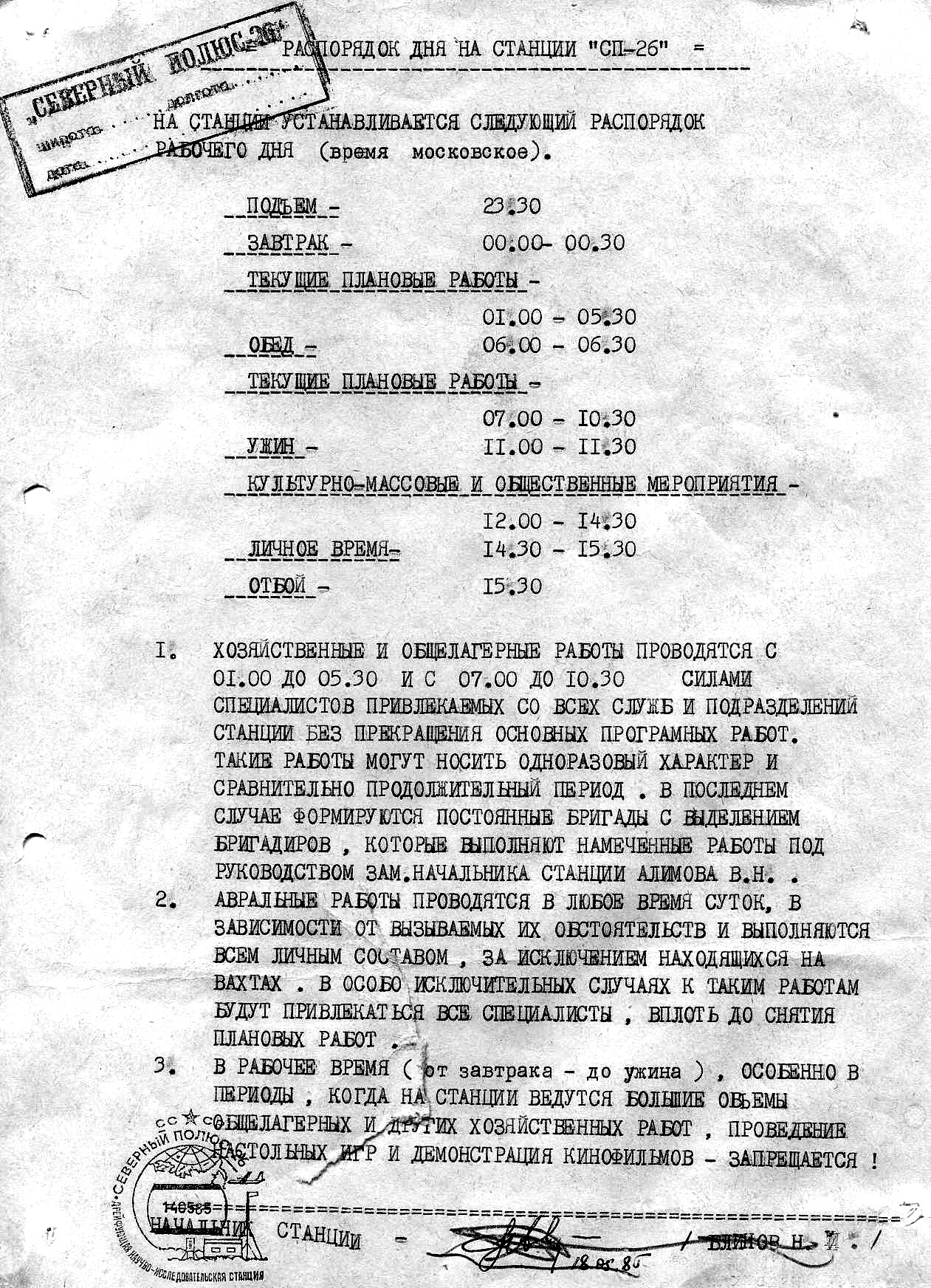 Смена принята: 29 апреля 1984 г. 80°29' с.ш.; 175°30' з.д.,