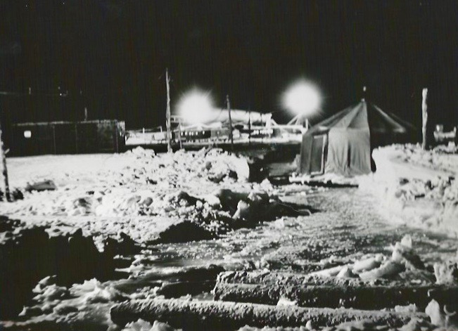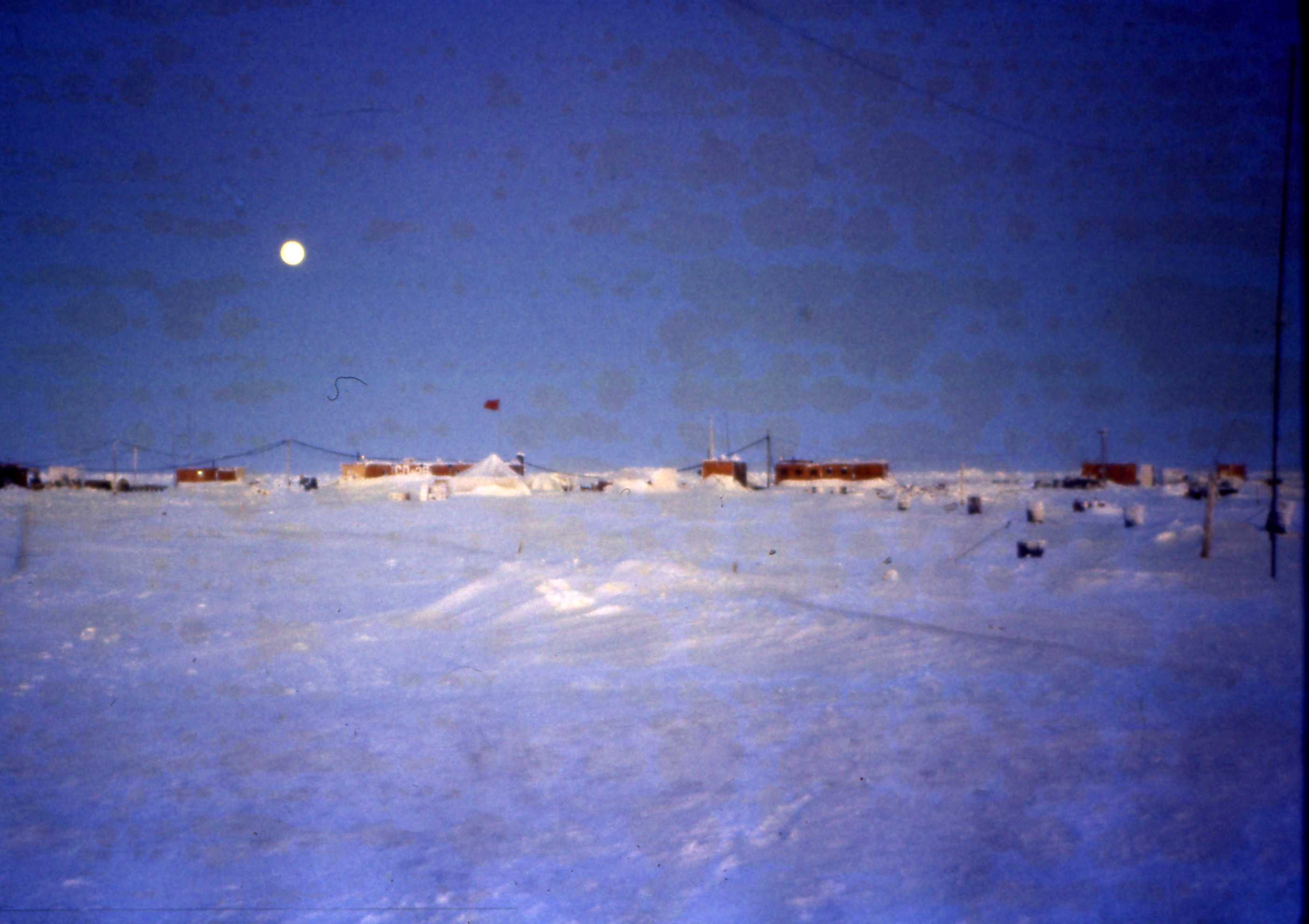 Станция заселена 22 марта 1983 г. 77°21' с.ш.; 179°15' з.д., толщина льдины 250-350 см.