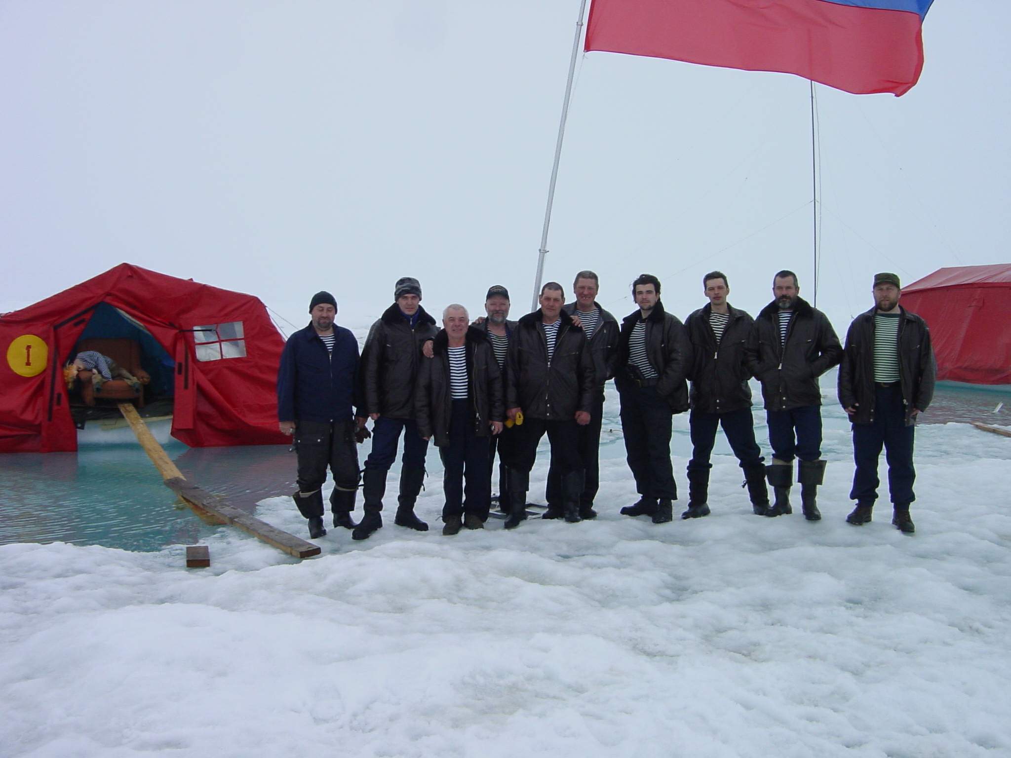 At the end of April 2003 the world’s only Arctic station on an ice floe, North Pole-32, was established by the Expedition Centre for Arctic and Antarctica in Moscow, while the AARI was responsible for the research programme. On March 04, 2004 the drifting station got in distress at sea, about 150 km away from the North Pole. Ice started breaking off and pack ice shoved over the flow, pressing it under water. Sixteen barracks and containers disappeared in the sea, while twelve men and two dogs waited for help. They were rescued on March 06, 2004 by a Mi-8 helicopter, but most of their equipment had to be abandoned and remained on the ice floe. Two months before the planned dismantling of the ice camp the research programme was ended, after working successfully for ten months.