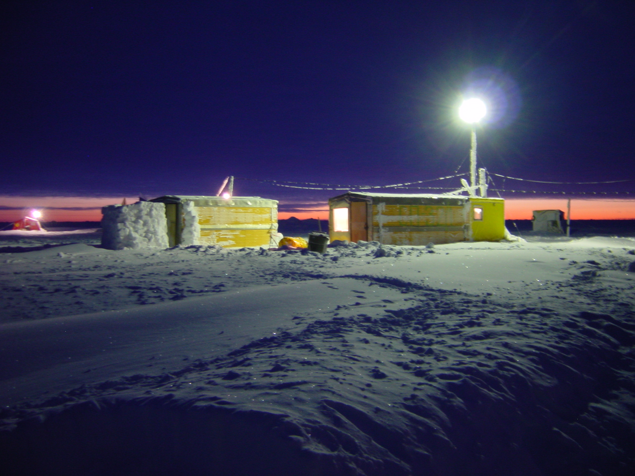 Полярная ночь. Уже живем не в палатках, а в построенных домиках.