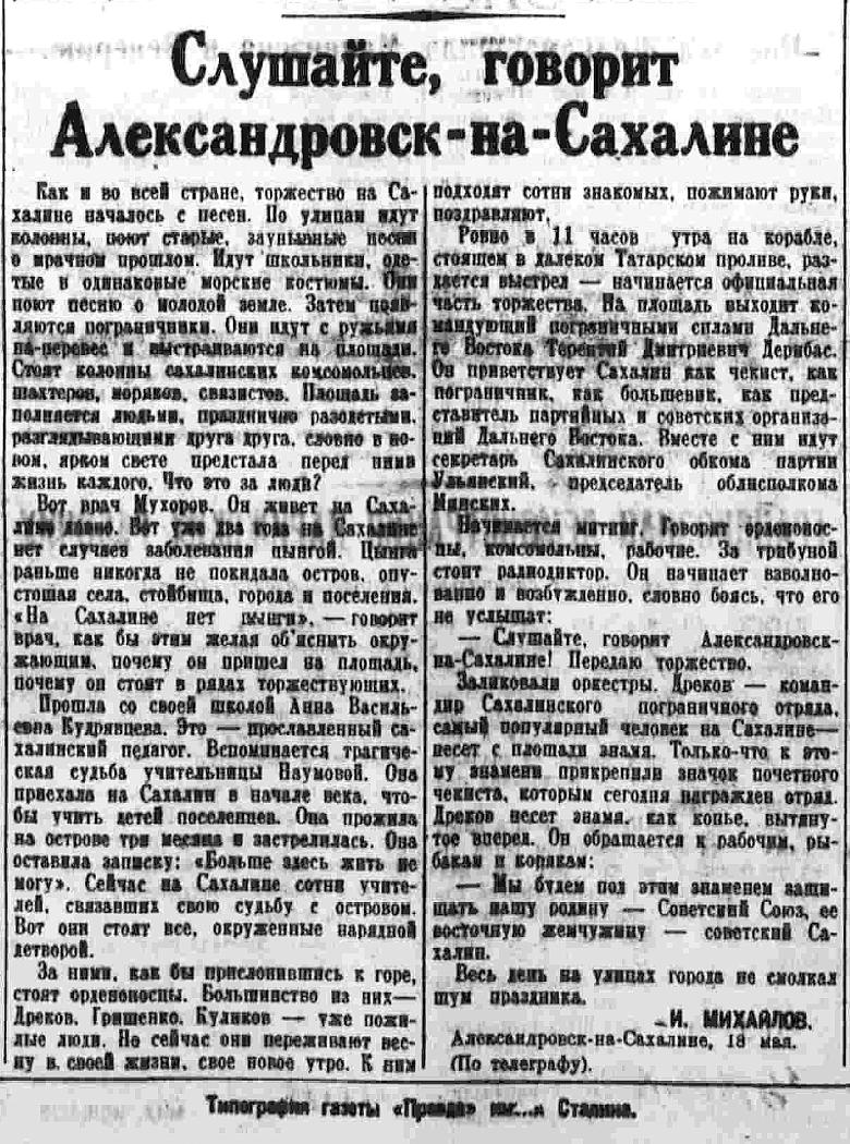 И. Михайлов позже, 18 и 20 мая "был замечен" по публикациям в «Правде» уже будучи в Александровске-на-Сахалине, но о перелёте Н-32 он уже ни словом не упоминает...