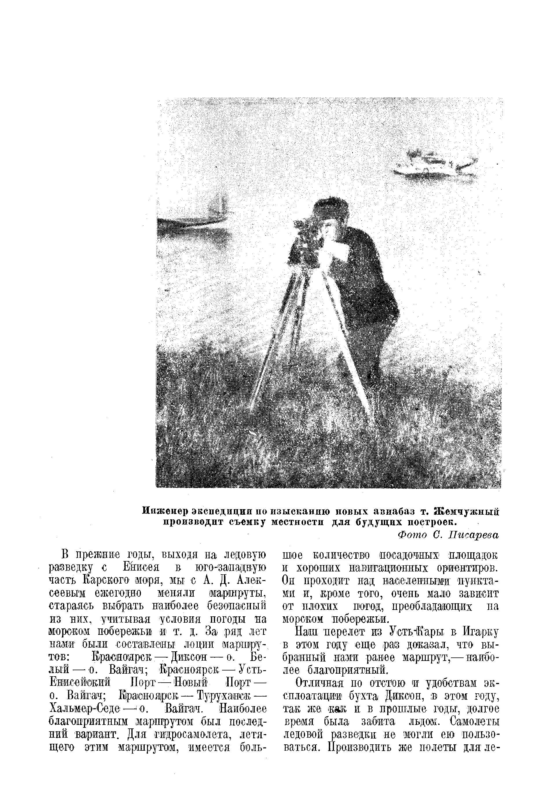 Инженер экспедиции по изысканию новых авиабаз т. Жемчужный производит съемку местности для будущих построек.