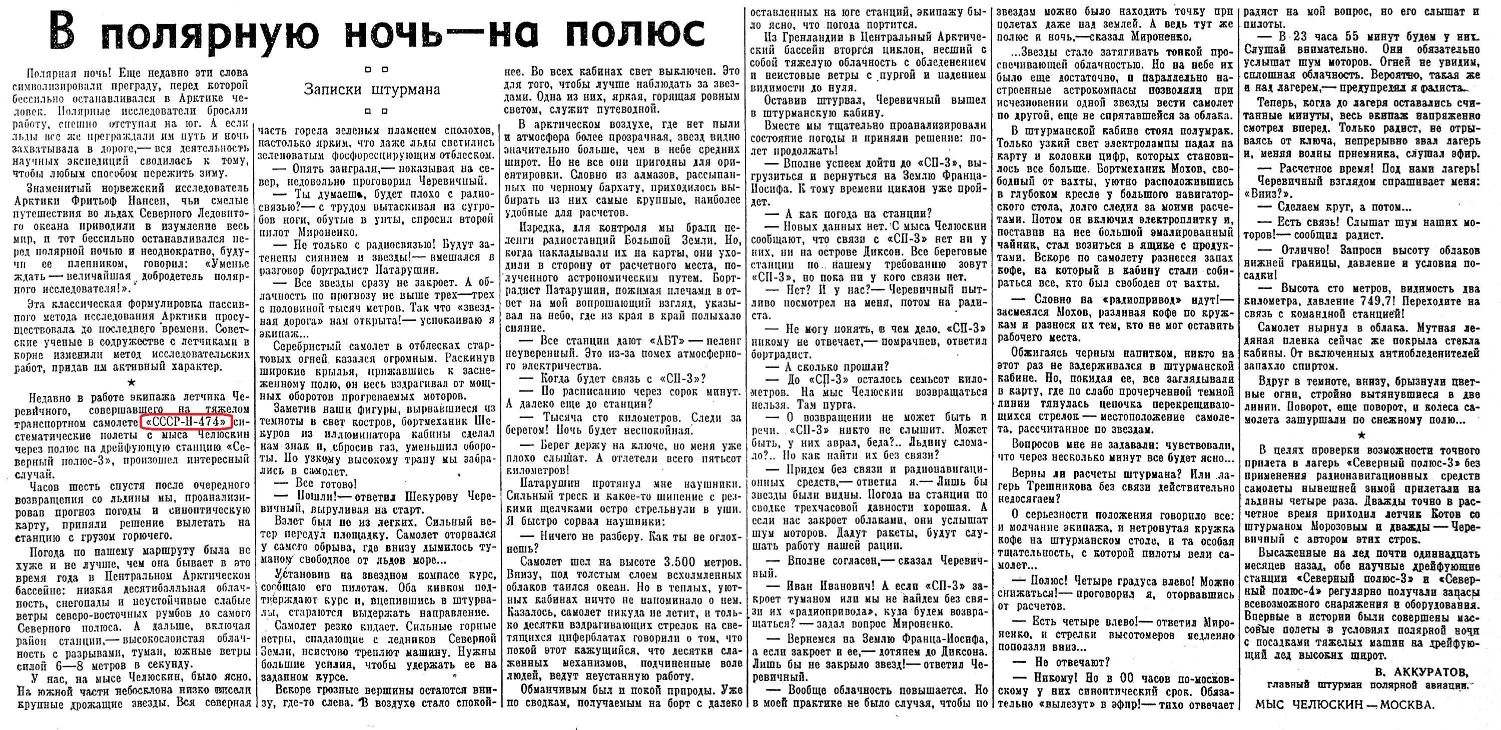Известия 1955-054 (11743)_05.03.1955 Аккуратов. В полярную ночь на полюс.jpg