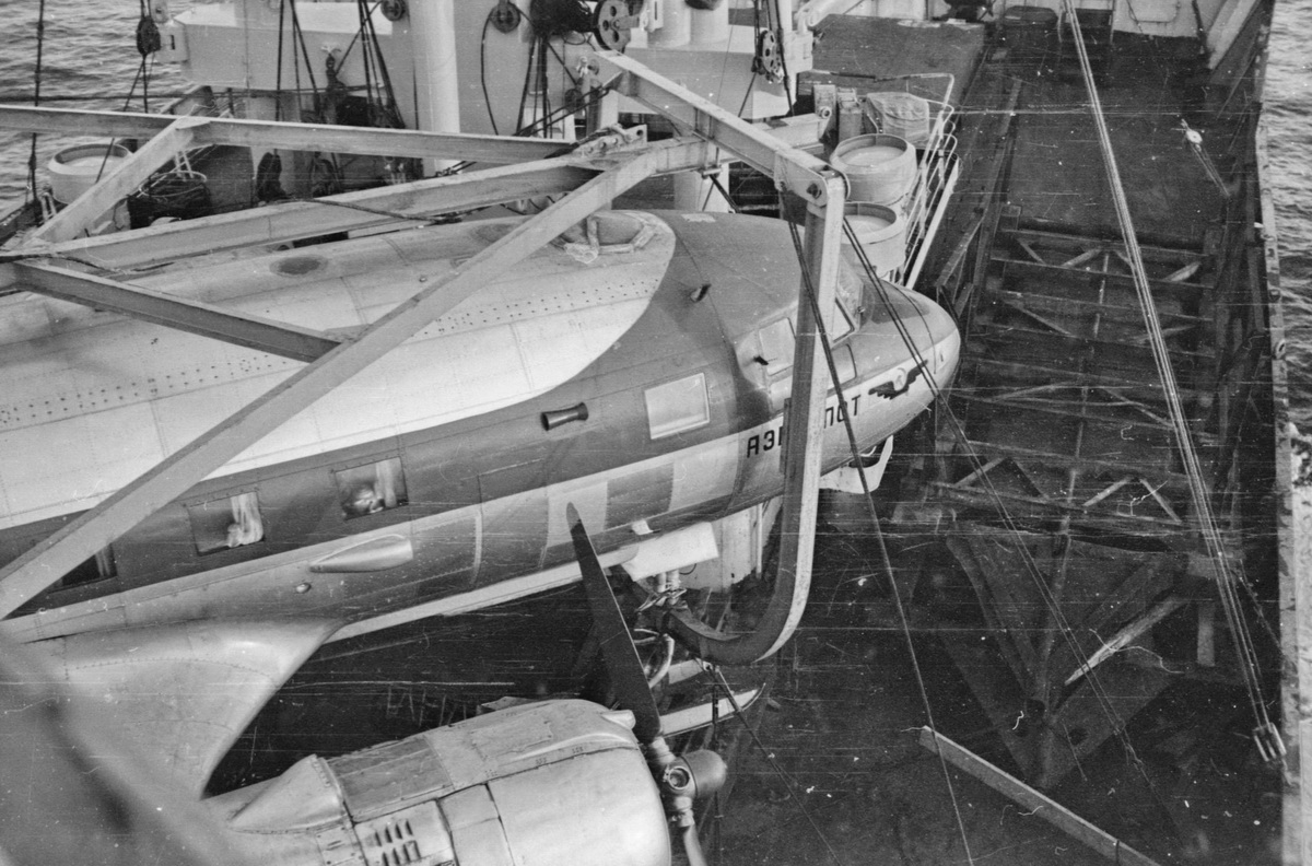 Этим самолетом вылетела в Арктику вторая смена полярников комсомольско-молодежной станции «Северный полюс-8».