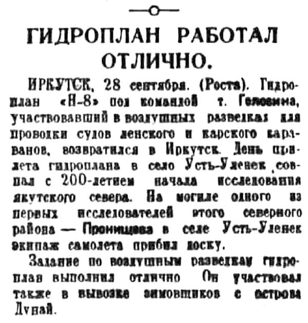 1936 г - Командир Задков В.Н. находился в Дудинке в резерве по оказанию помощи на случай вынужденной посадки при перелёте Чкалова на самолёте РД АНТ-25.