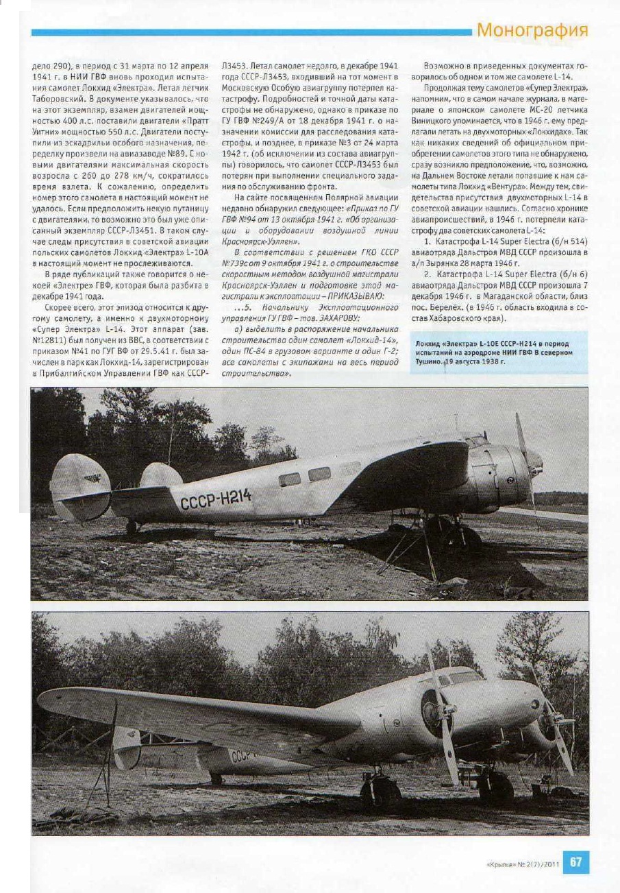 Махонькое добавление к статье Михаила Маслова "Самолет СССР-Н214 и другие советские "Электры". Скорее всего в Акте в качестве ЛОКХИД-ЭЛЕКТРО с моторами P&W упоминается L-10A СССР-Л3451 из состава ЭОН (эскадрильи особого назначения) ГВФ.