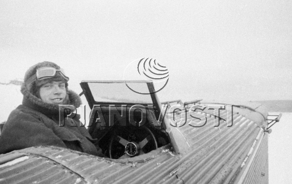 Пилот Махоткин на самолете «Н-115» прошлой зимой посетил многие полярные станции на побережья Карского моря, доставив зимовщикам почту, газеты и посылки, перевез экипаж на зазимовавшее во льдах гидрографическое судно «Торос».