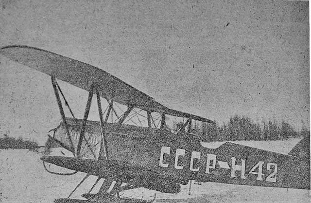 П-5 мор., зав. № 7444, мотор - М-17 Дата присвоения опознавательного знака с литерой "Н» - 15.09.34 г. Первоначальный владелец воздушного судна - УВС ГУСМП. Самолет выпуска 1934 года. 25 марта 1937 года приказом по УПА № 11 СССР-Н42 закрепляется за 2 отрядом Управления по организации Тихоокеанской авиалинии для работ по внутренней связи Чукотки. В состав управления был переведен весь Чукотский авиаотряд. В августе того же года самолет включили в группу по поискам пропавшего самолета С.А. Леваневского ДБ-А USSR-Н209. Исключен из списков самолетного парка ГУСМП 11.05.38 г. (М.Орлов "Крылья" 1.2010)