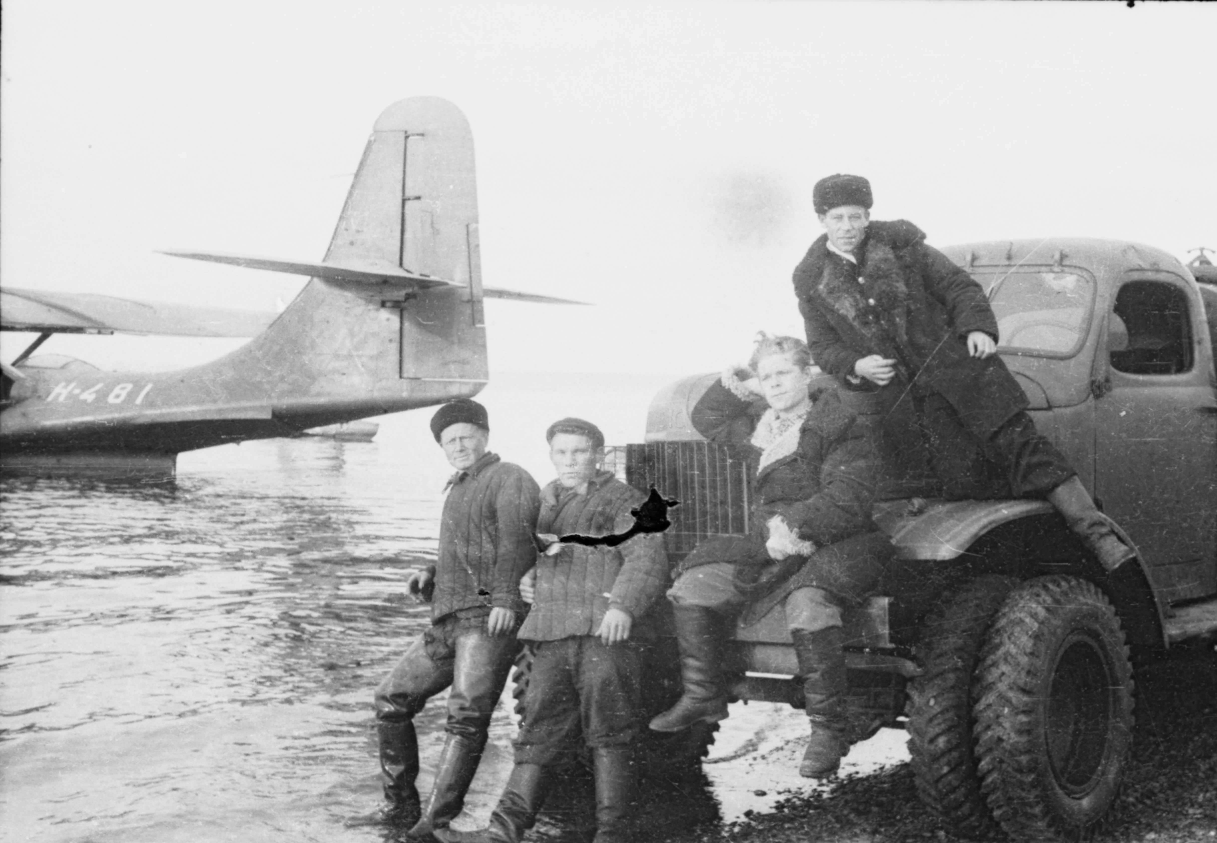 Пилот - В.В. Мальков. Штурман - А.А. Лебедев. Гидрологи - А.П. Шумский, И.П. Романов, В.А. Шамонтьев.