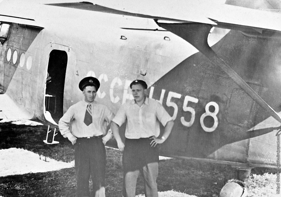 Пилот - А.А. Каш. Штурман - А. Шамес. Гидролог - А.П. Козырев.