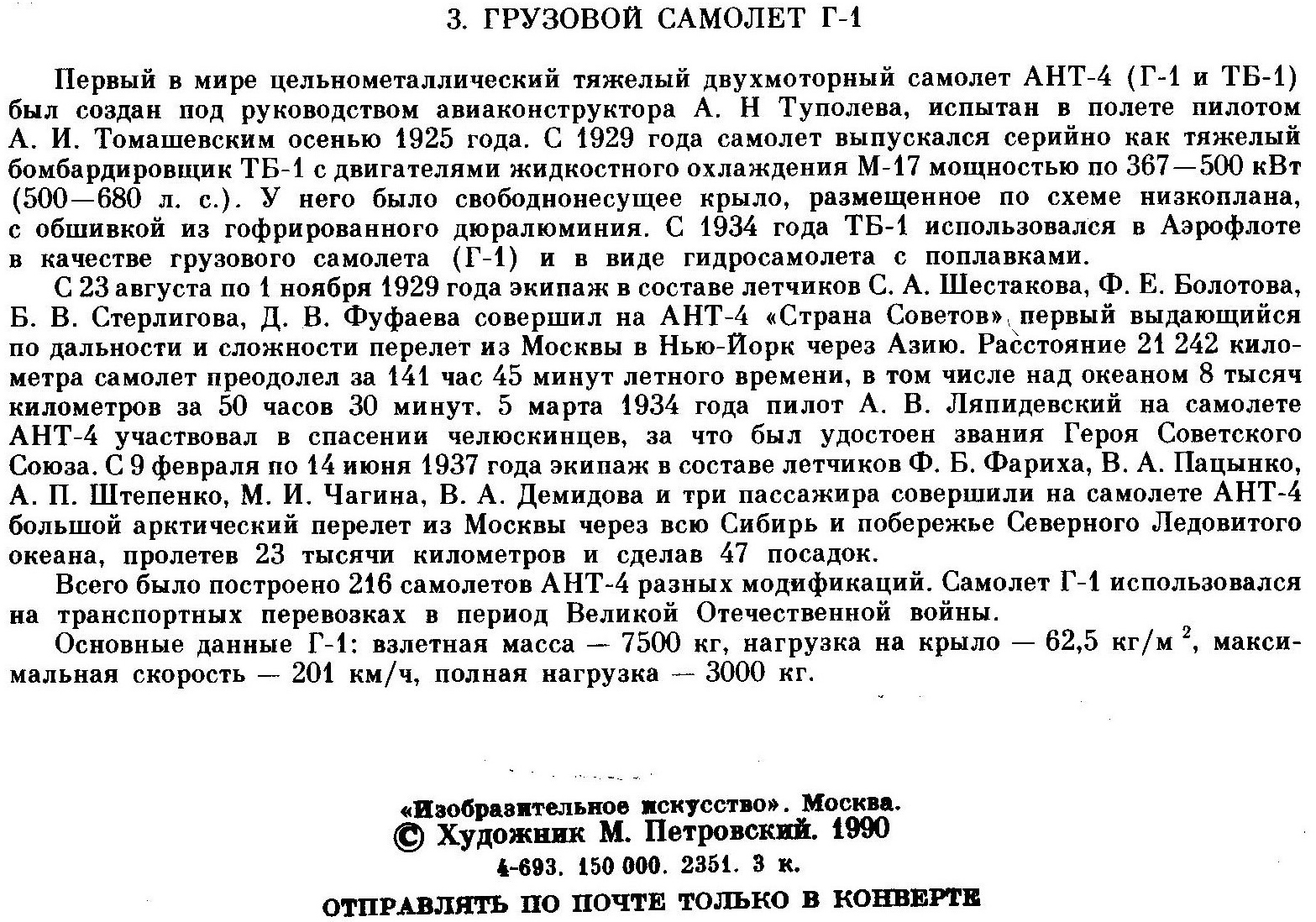 Dobrolet пишет:Открытка из серии Крылья страны Советов. 1990.г. Художник М. Петровский.