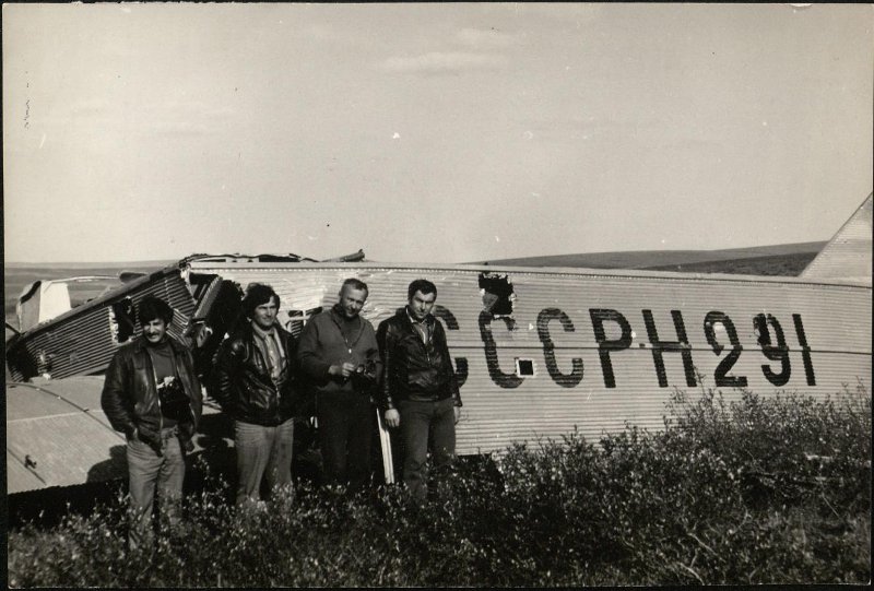 На месте катастрофы самолета ТБ-3 (Г-2) авиаотряда Дальстроя. 1971-1975 гг. Магаданское областное государственное автономное учреждение культуры "Магаданский областной краеведческий музей"
