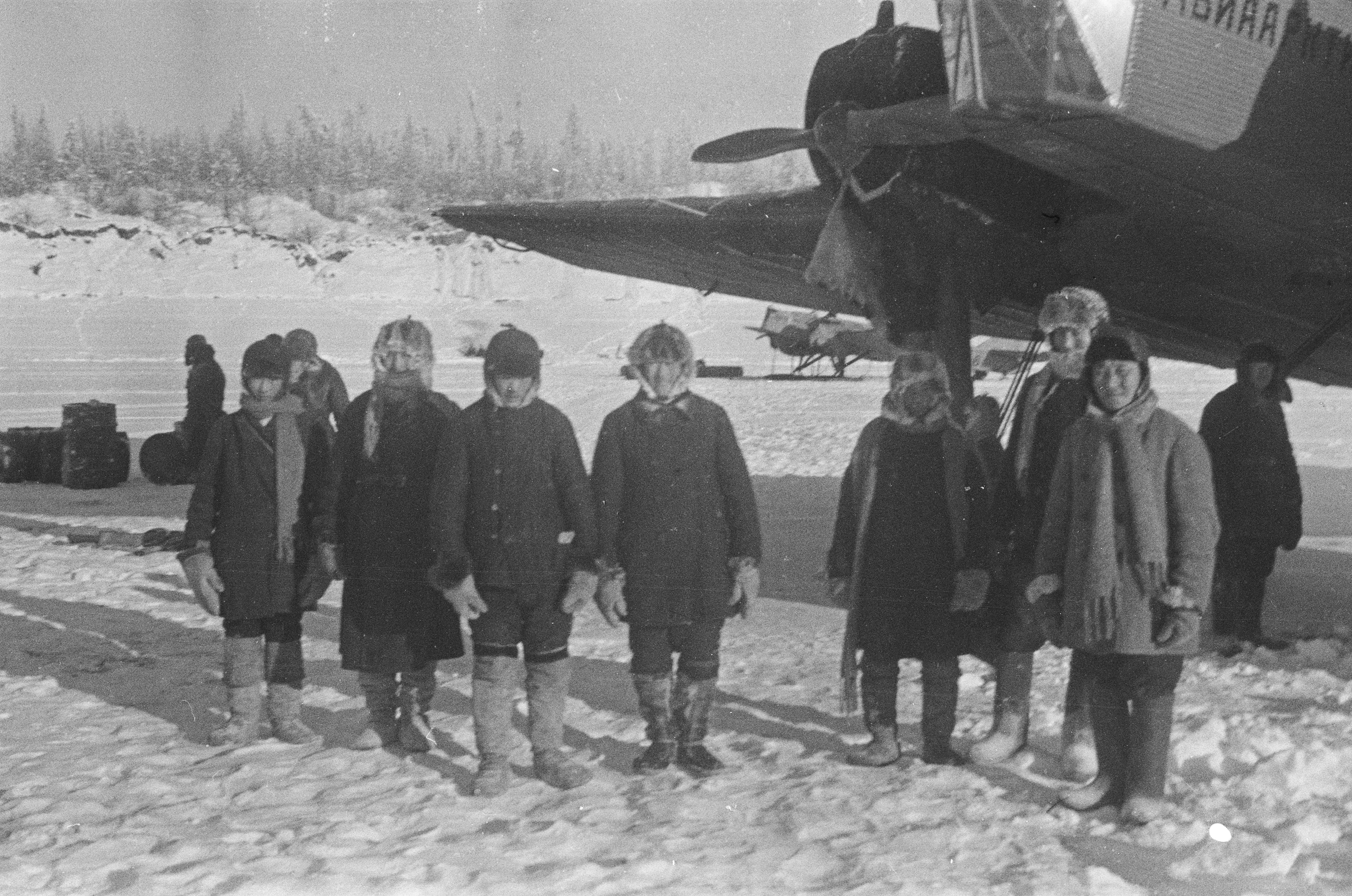 Полярный летчик Ленской авиагруппы Главсевморпути Гурьев совершает второй зимний рейс в суровых условиях полярной ночи. Он летит по маршруту Якутск — Тикси — Якутск.