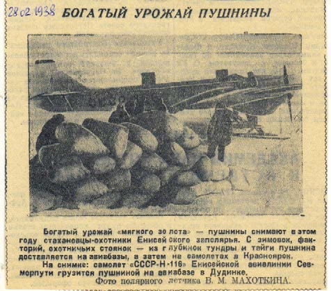 "Такие же прекрасные образцы овладения техникой в Арктике показал другой коммунист - летчик Смирнов. На тяжелой машине "Н-116" вместе с отличным, трудолюбимым механиком т. Карповым он в три раза сократил время полета из Красноярска в Игарку. Он доказал, что при благоприятной погоде и хорошем обслуживании самолета на промежуточных аэропортах можно этот участок пролететь туда и обратно в два дня вместо шести дней, положенных по плану."
