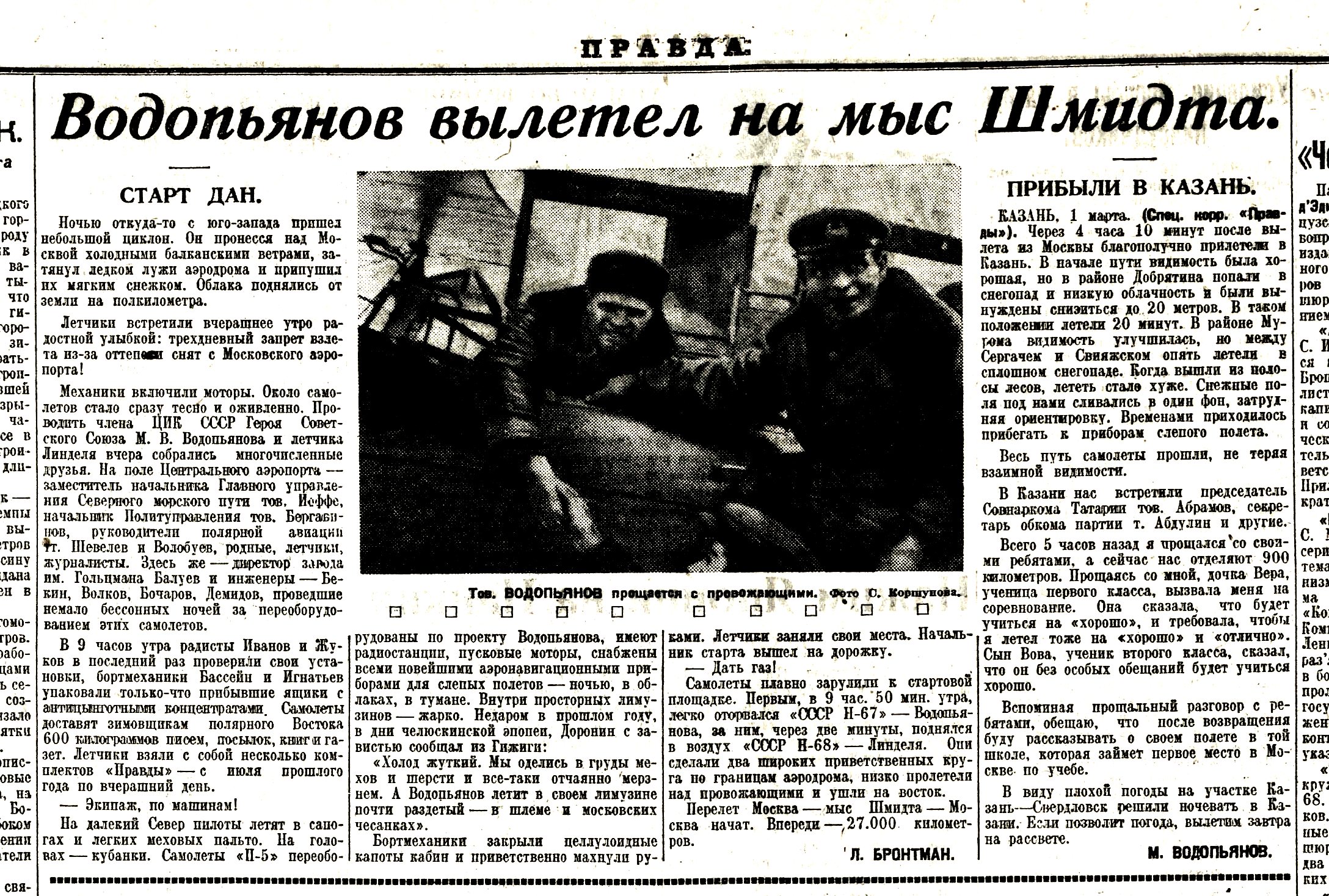 Водопьянов вылетел на мыс Шмидта//Правда, 1935, № 60 (6306), 2 марта