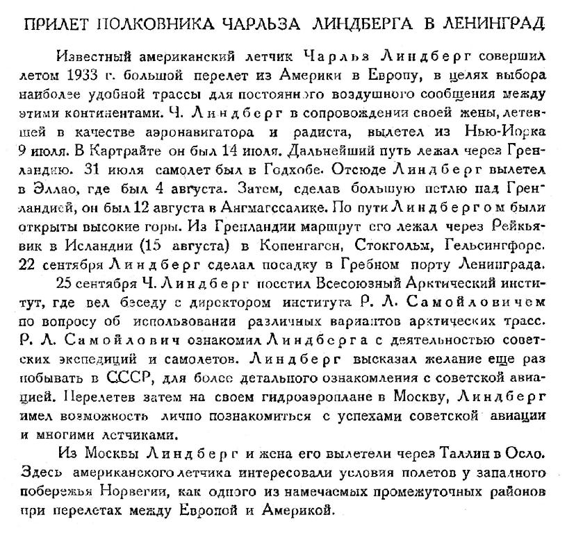 ПРЕБЫВАНИЕ ЧАРЛЬЗА ЛИНДБЕРГА В ЛЕНИНГРАДЕ