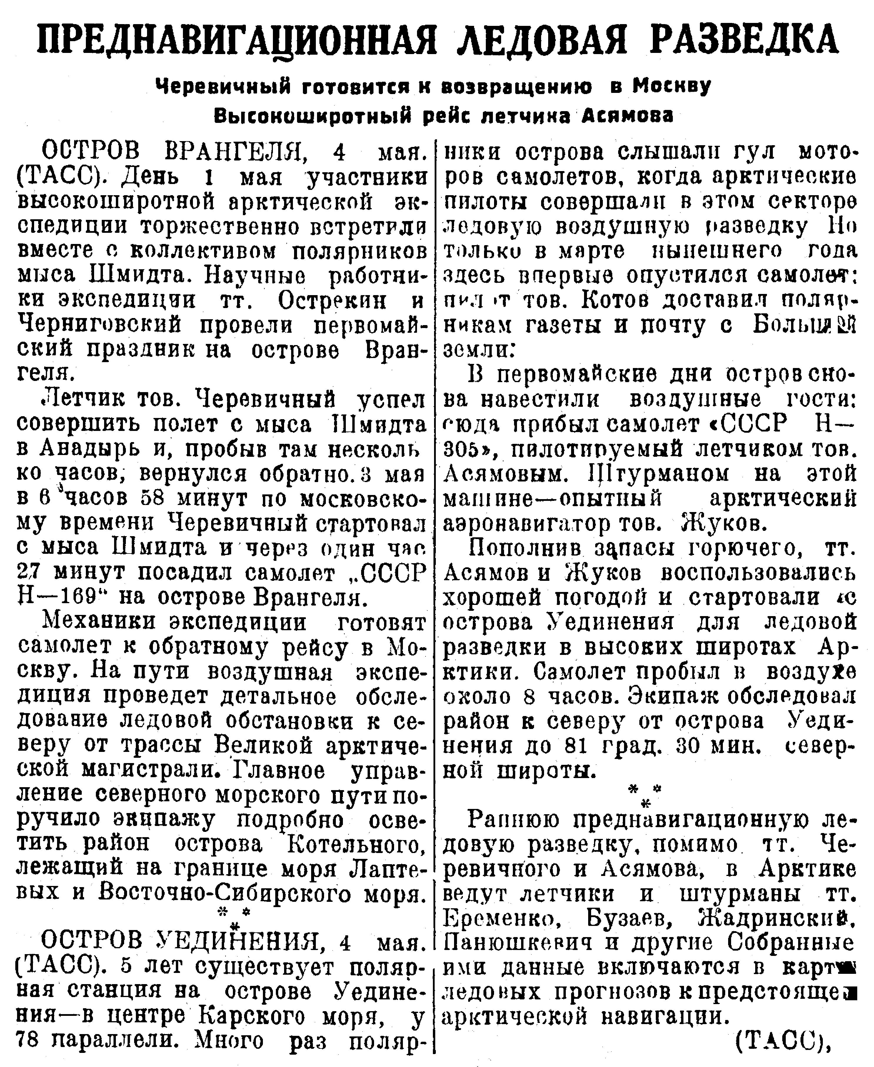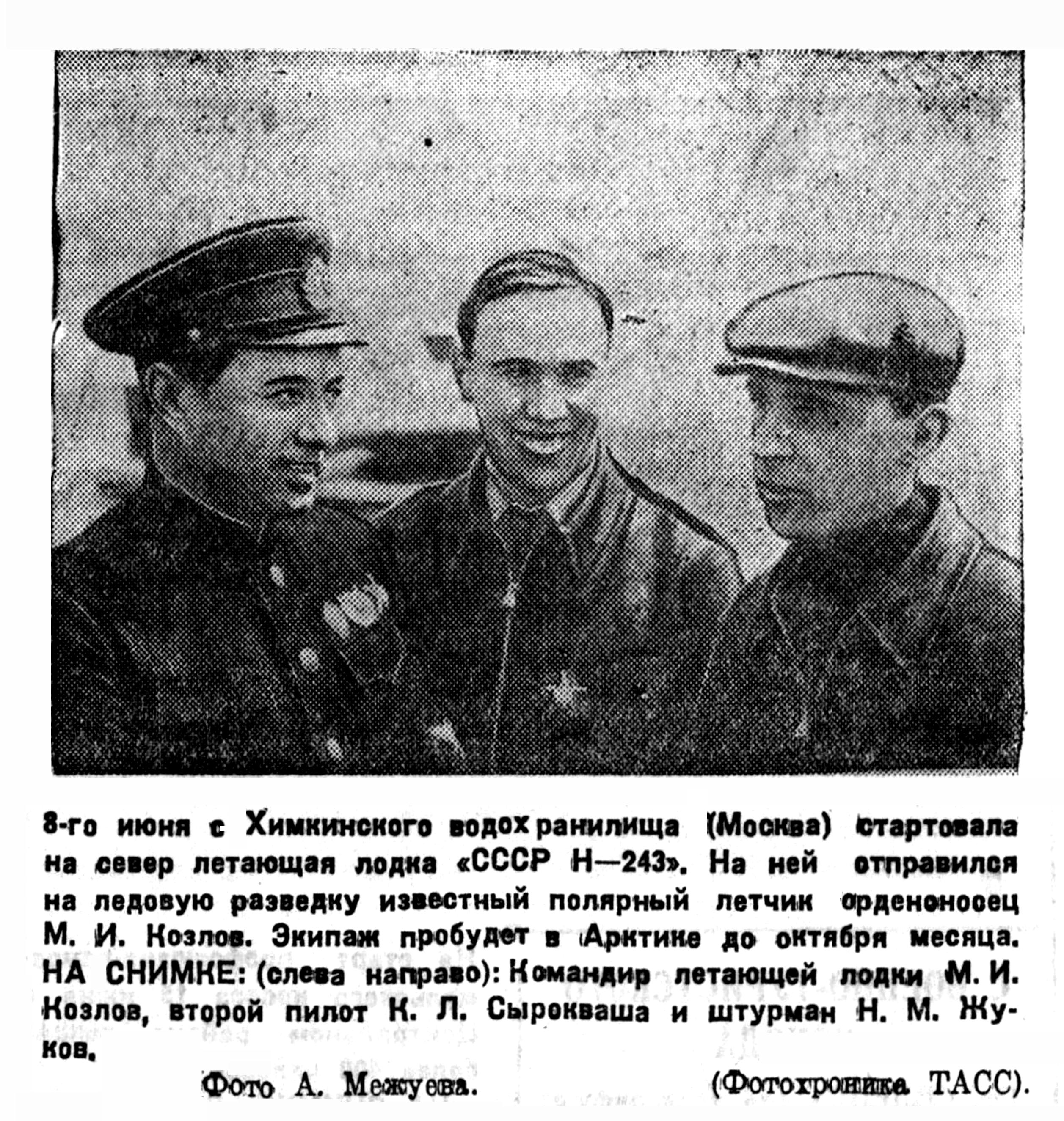 При этом направляю проект постановления Совнаркома СССР о выделении 2-х самолётов «Консолидейтед» для особых поручений. Прилагаю также Справку по этим двум самолётам. Зам. начальника Главсевморпути /Э. Кренкель/