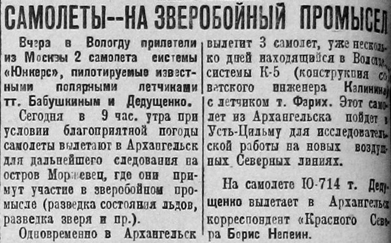 На линии Свердловск — Обдорск будут курсировать многомоторные аэропланы советской конструкции типа АНТ - 9. Стоимость перелета Свердловск — Обдорск принята в 280 рублей с человека. Регулярное сообщение на новой линии открывается в январе 1932 г.