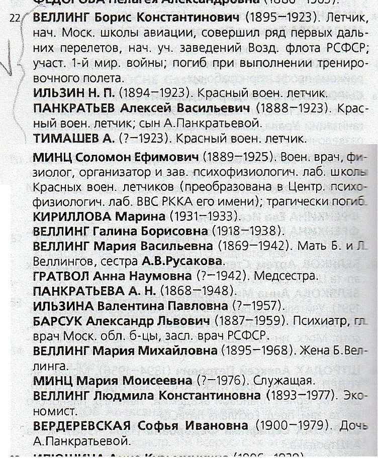 Адольф Милованов пишет: На этом памятнике: Веллинг Боис Константинович, Ильзин Н.П., Панкратьев Алексей Васильевич и Тимашев А. - все красные военные лётчики. Дата смерти у всех одинакова - 1923г.
