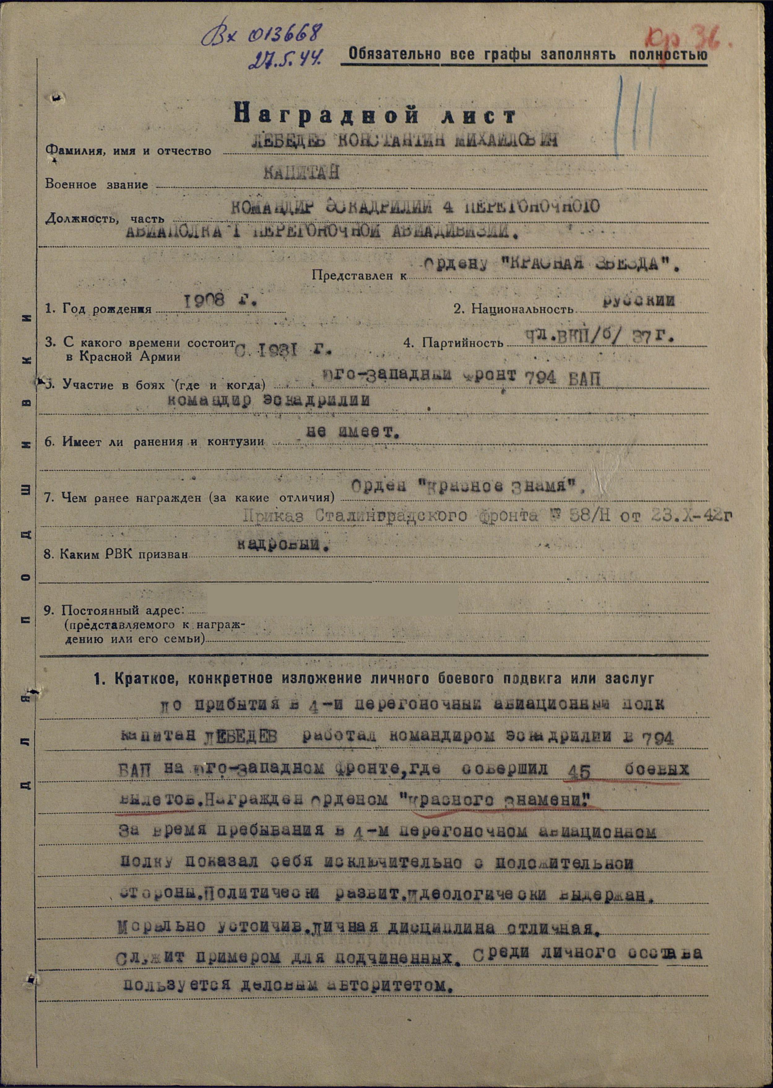 Лебедев Константин Михайлович (1908 - 11.09.1956)
