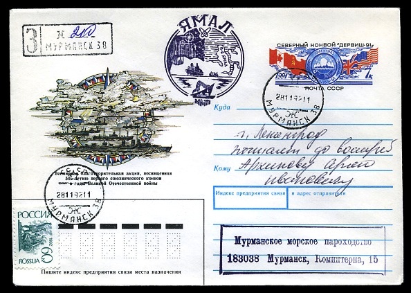 http://www.mirmarok.ru/prim/view_article/791/ в теме "Гибель конвоя PQ-17" я обнаружил картинку фрагмента известного "конвойного" конверта с вроде(?) надпечаткой голубого цвета "ARKHANGELSK 25-07-1992".