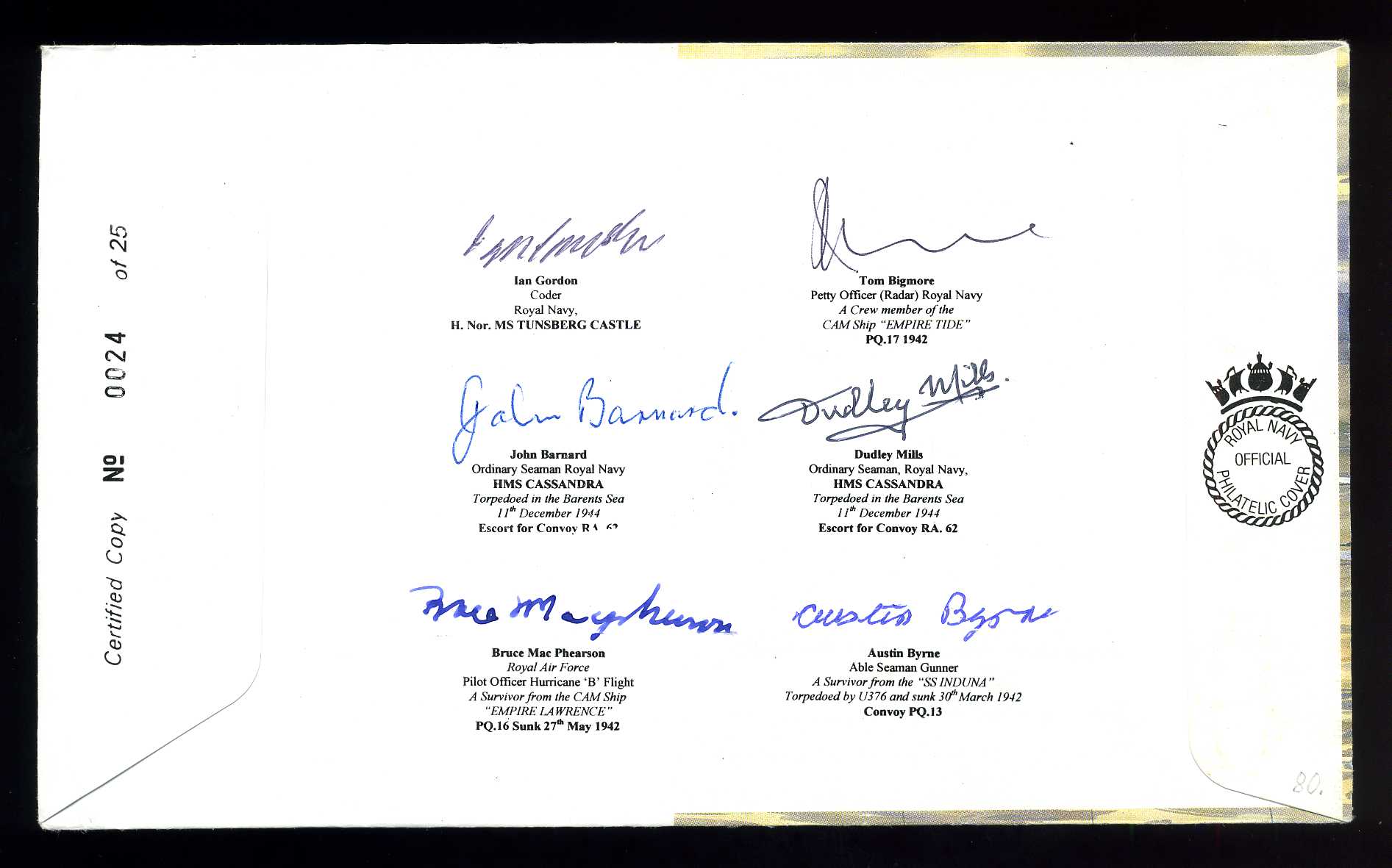 На конверте стит 11 (одиннадцать!) подписей непосредственных участников плавания в конвоях на различных судах и людей, имеющих какое-то отношение к конвоям.