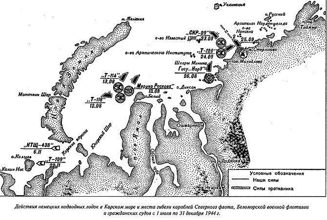 В 1942—1943 гг. защищенные якорные стоянки были оборудованы на Новой Земле (Русская Гавань, Кармакулы, Маточкин Шар, Белушья), в Бугрино (о. Колгуев), на о. Диксон. Кроме того, сооружены береговые батареи на м. Желания, в Югорском Шаре, на полуострове Михайлова и о. Нансена.