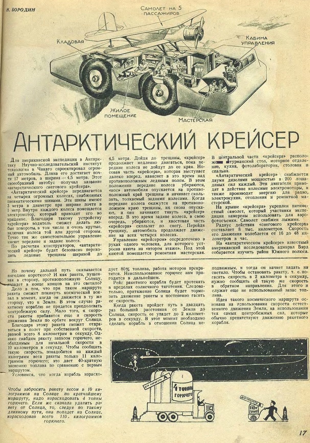 Поултер был типичным американцем, то есть не только ученым-физиком, но и оборотистым бизнесменом. Во всяком случае, он убедил конгресс в том, что такой Snow Cruiser («Снежный крейсер») построить не только можно, но и нужно, и обойдется вся затея в какие-то 150 000 долларов, которые к тому же дадут частные инвесторы. От правительства Поултер просил всего-то ничего: оплатить расходы на саму экспедицию и переброску левиафана в Антарктиду и обратно.